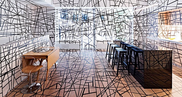 Have some spare electrical tape to hand? You could do worse than emulate this extreme home interior , one of a set featured in the New York Times Magazine .