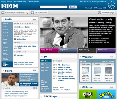 The new BBC homepage, launched today, allows users to customise their experience by selecting content and creating garish colour schemes. It’s hardly a new idea, but it’s well implemented, and if nothing else, it’s worth the admission fee for the kitsch analogue clock displayed in the header.
