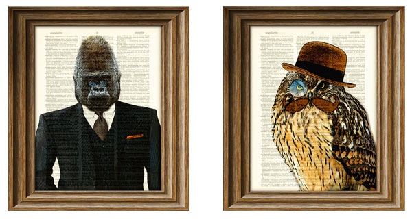 Is the anything hipper than a gorilla in a suit? Possibly not, but this owl sporting a monocle, hat and fetching moustache comes a close second. There’s more nice stuff in this Etsy store too.