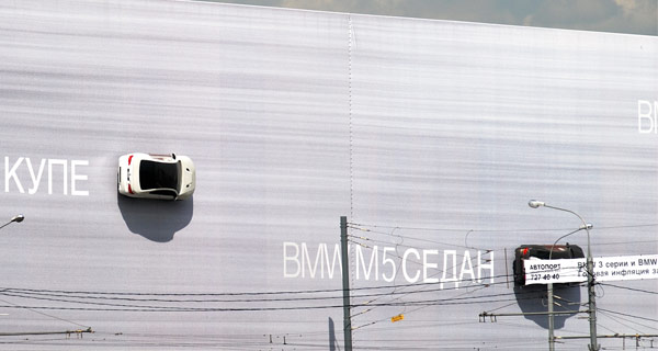 BMW’s monster billboard in Moscow is so large it sports actual vehicles on its surface.
